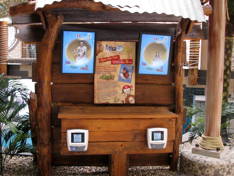 ·· Zentraler Server für Fotos, Datenbanken und Kommunikation ·· bis zu 12 Kameras / Aquashoots ·· bis zu 10 SB-Fototerminals oder Verkaufseinheiten mit Sprachauswahl für die komplette Bedienung ·· bis zu 24 IP-Vorschaumonitore zur Präsentation ·· Zuordnung der Fotos per RFID, QR-Code oder Barcode ·· Einbau an offenen und geschlossenen Wasserrutschen, Röhren, Strömungskanälen oder an Wasserfällen |